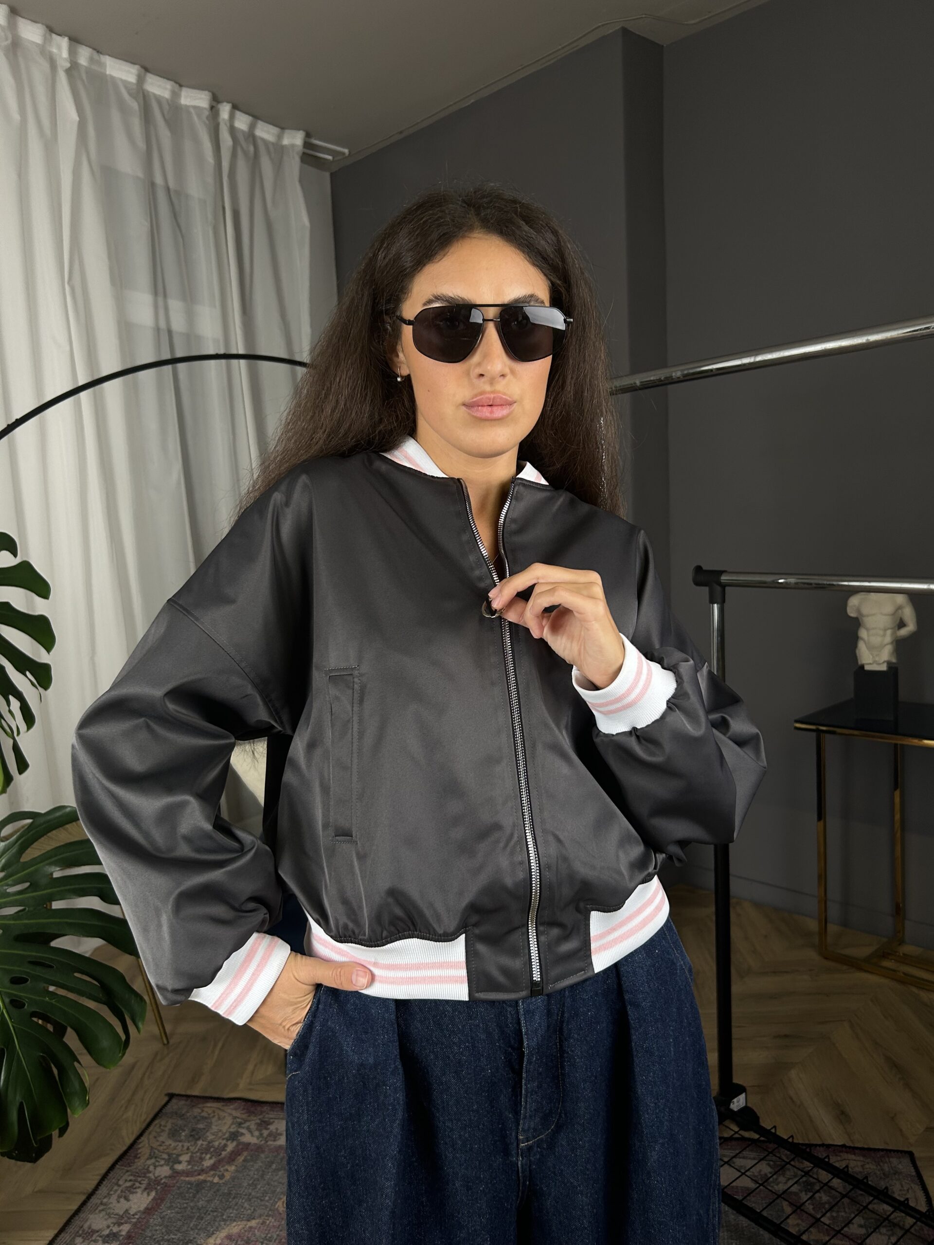 Бомбер з плащового котона підійде, як для повсякденних так и для спортивних образів . Має єластичні манжети на рукавах и внизу вироба .