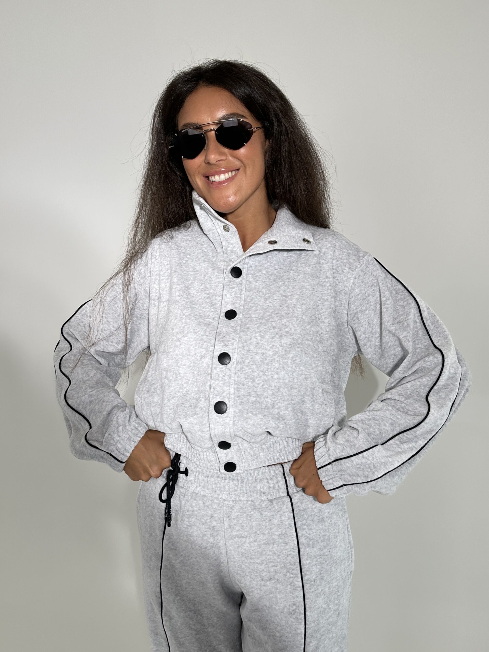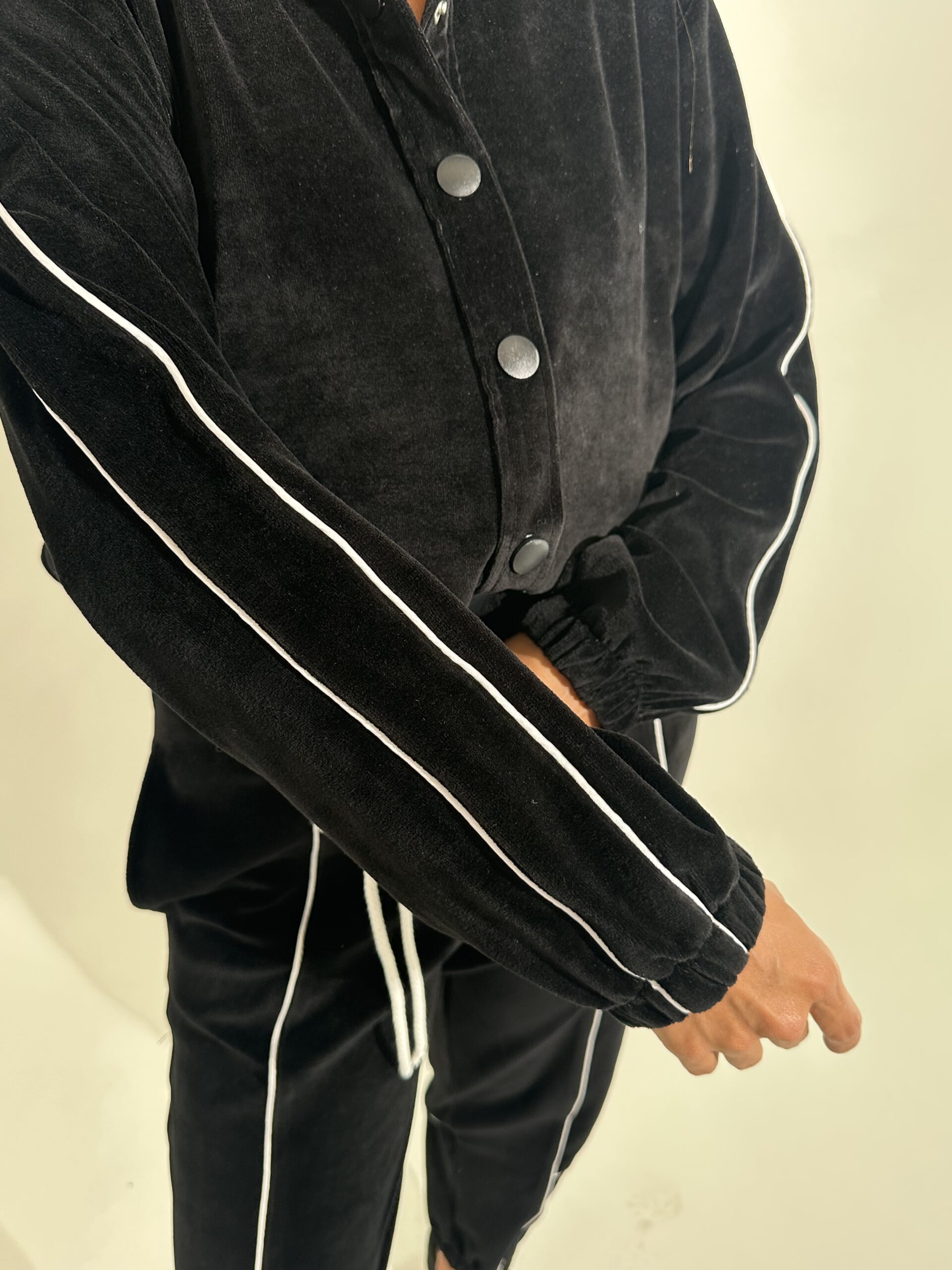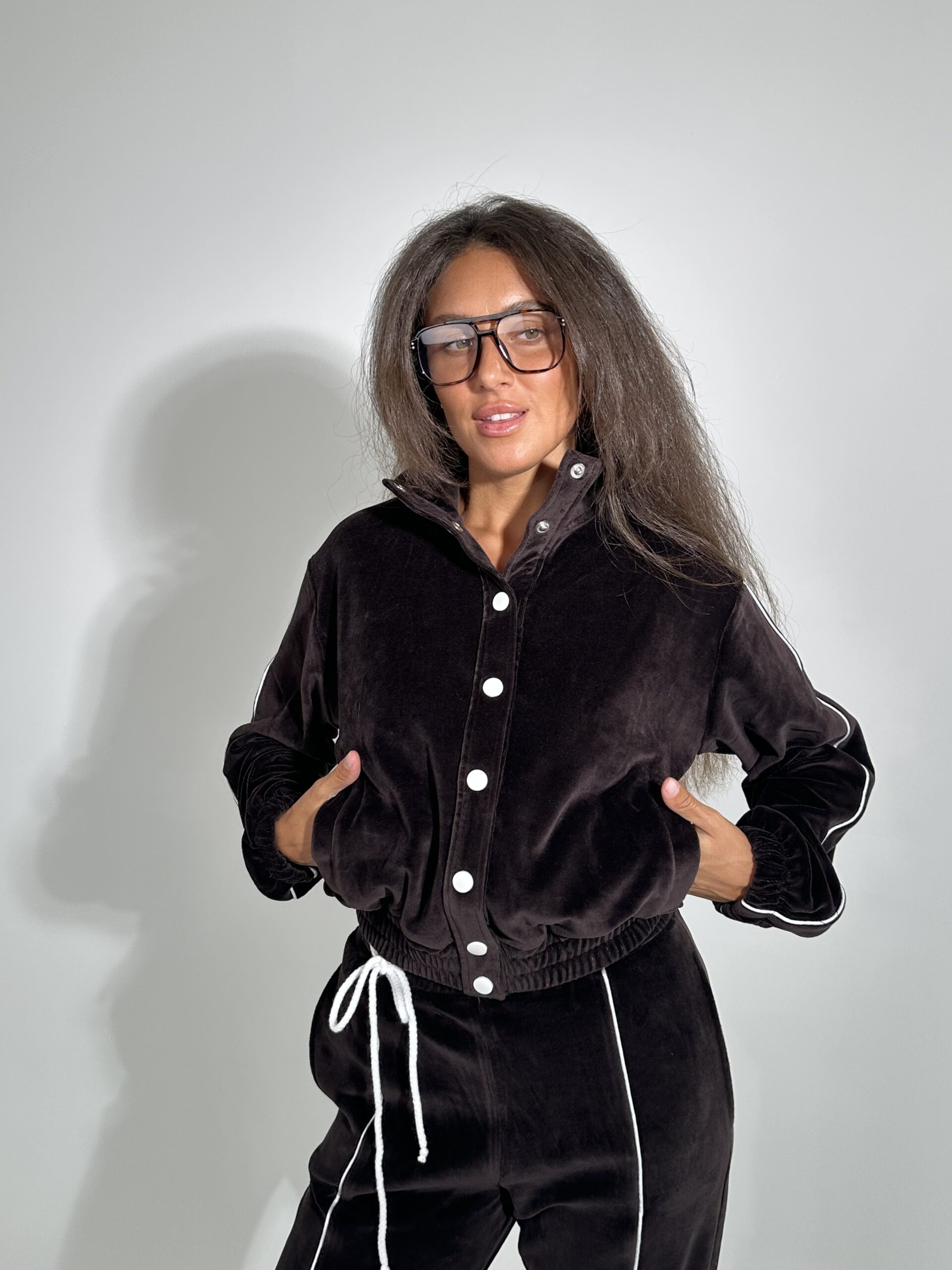 Бомбер в тканині велюр на котоновій основі на кнопках .