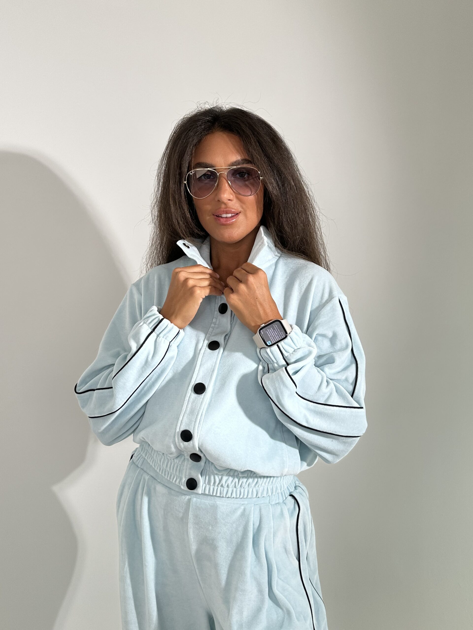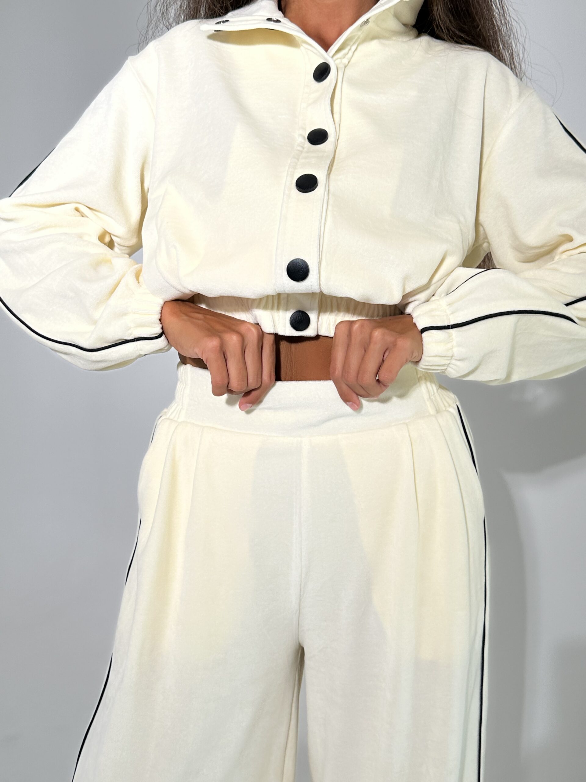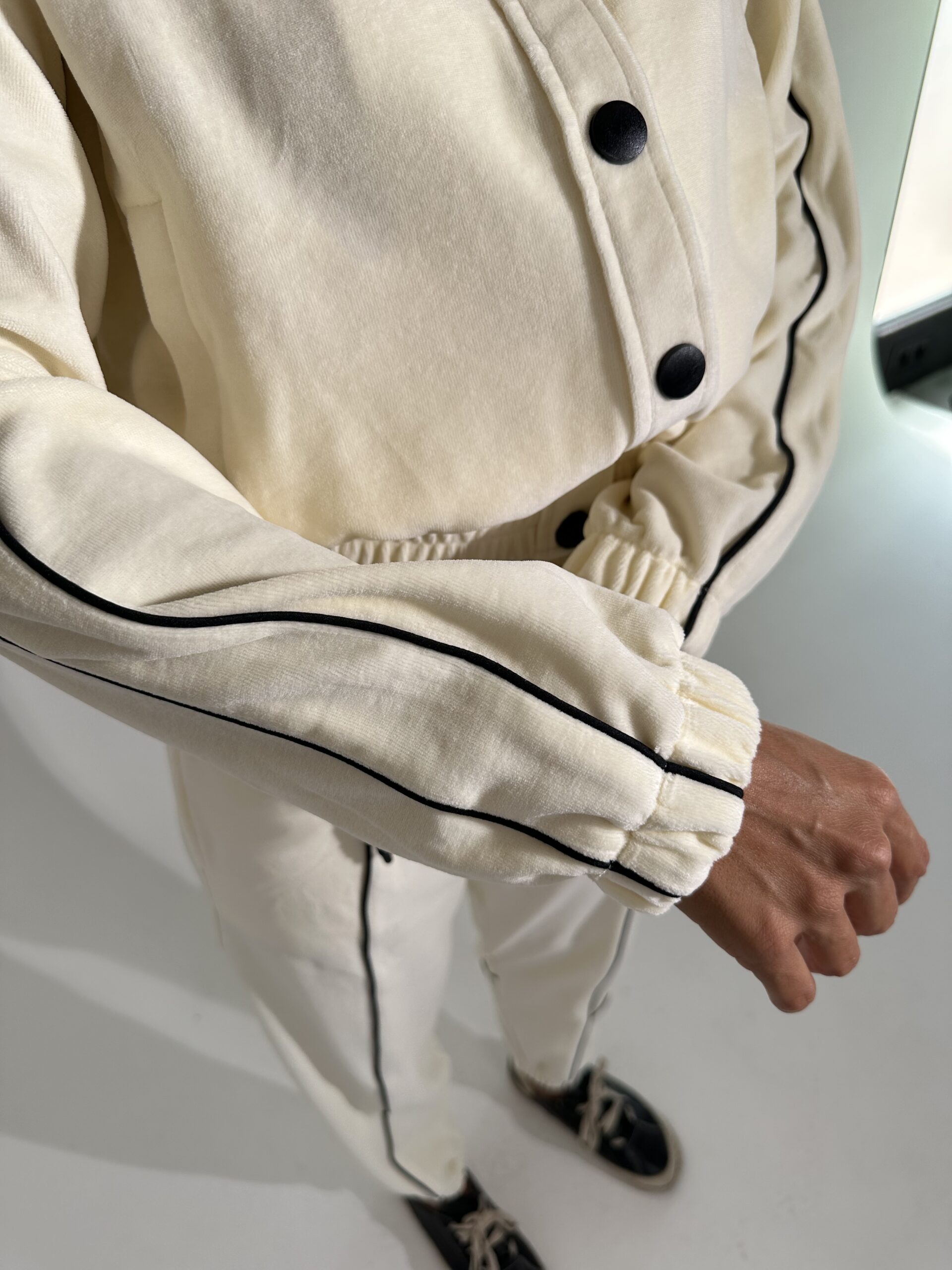 Бомбер в тканині велюр на котоновій основі на кнопках .
